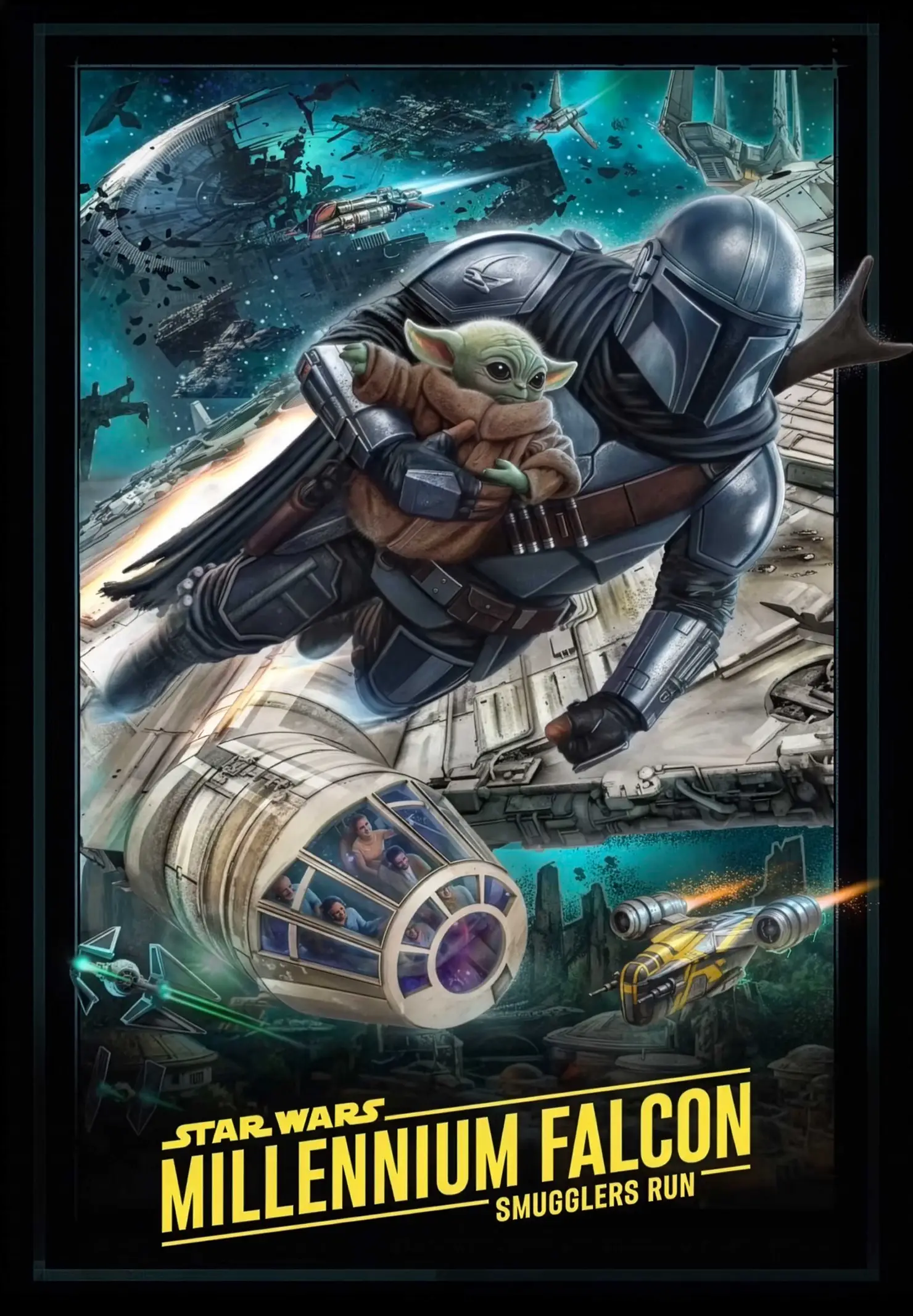 Disney has officially released a new attraction poster for the major Millennium Falcon: Smugglers Run update arriving on May 22, 2026. This refresh coincides with the theatrical release of The Mandalorian and Grogu and introduces an all-new mission where guests join Din Djarin and Grogu to track down a bounty for Hondo Ohnaka. The update brings significant gameplay changes, including the ability for crews to choose their own flight paths to iconic locations like Coruscant, Bespin, and the wreckage of the second Death Star. Additionally, the engineer role is being revamped to allow players to interact directly with Grogu, all powered by a visual jump to Unreal Engine 5 to match the look of the Disney+ series.