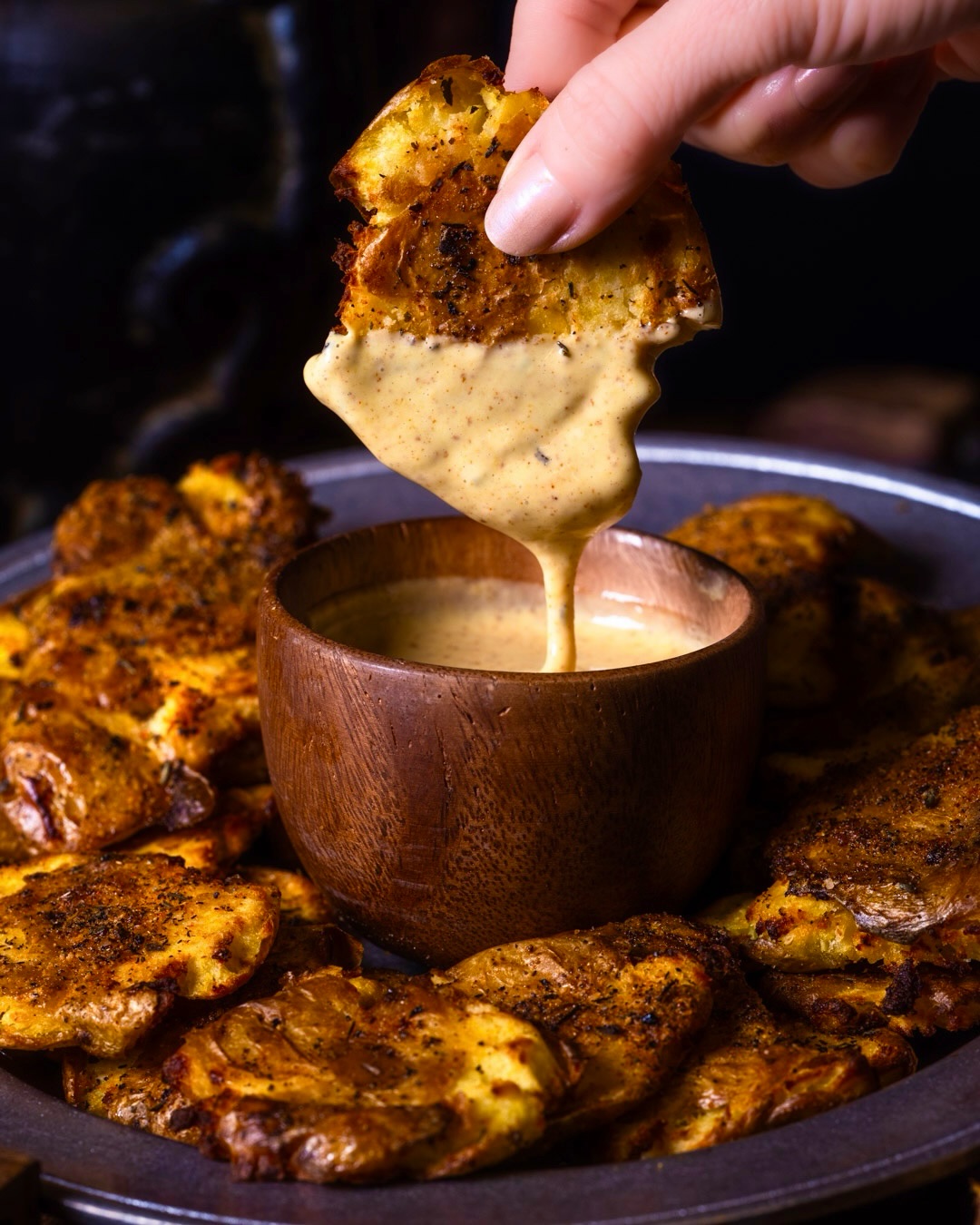 Smashed Potato Fritters: Served with unique dipping sauces
