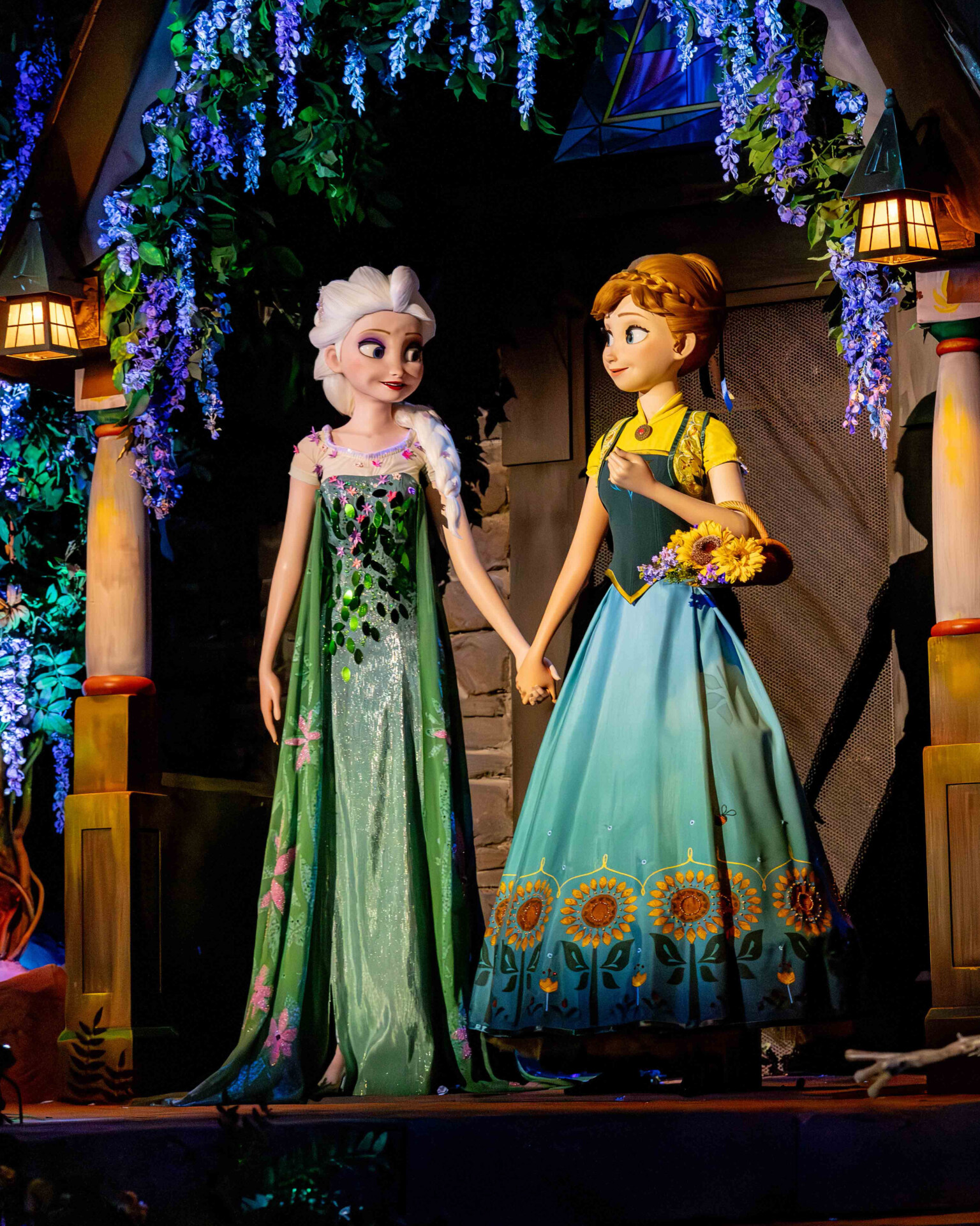 Anna & Kristoff: In the “For the First Time in Forever” scene, the duo looks significantly more “present.” Without the projection glare, you can see the fine details in their costumes and the warmth in their expressions.